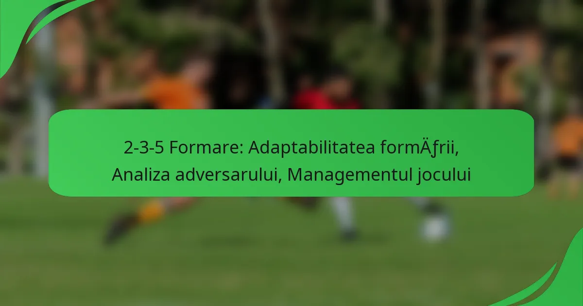 Formația 2-3-5 este o strategie clasică de fotbal care include doi fundași, trei mijlocași și cinci atacanți, prioritizând jocul ofensiv în timp ce asigură un cadru defensiv de bază. Adaptabilitatea sa permite echipelor să modifice pozițiile și rolurile jucătorilor în funcție de punctele forte ale adversarilor și de situațiile de joc, sporind flexibilitatea tactică. Prin analizarea eficientă a adversarilor, echipele pot optimiza gestionarea jocului, crescându-și șansele de succes pe teren.