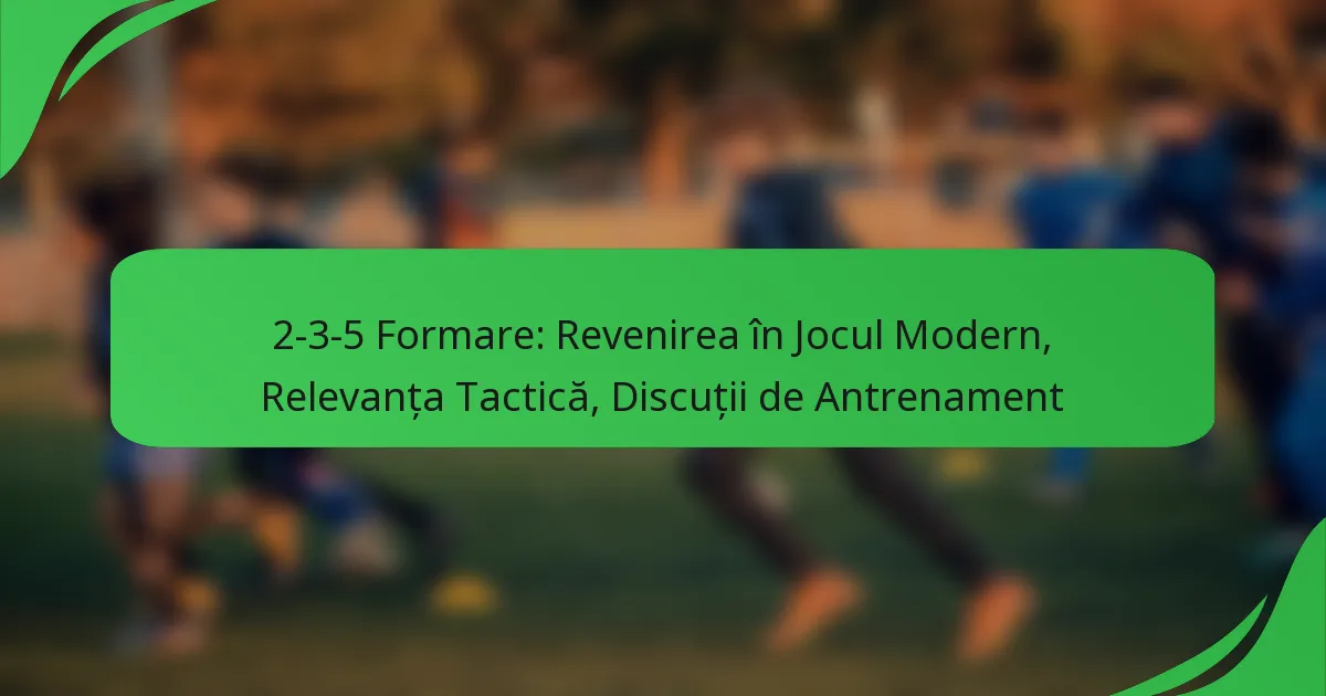 Filosofiile de antrenament joacă un rol semnificativ în revenirea formei 2-3-5. Mulți antrenori contemporani pun accent pe jocul bazat pe posesie, care se aliniază bine cu structura formei. Această abordare permite echipelor să controleze jocul, creând multiple opțiuni ofensive.