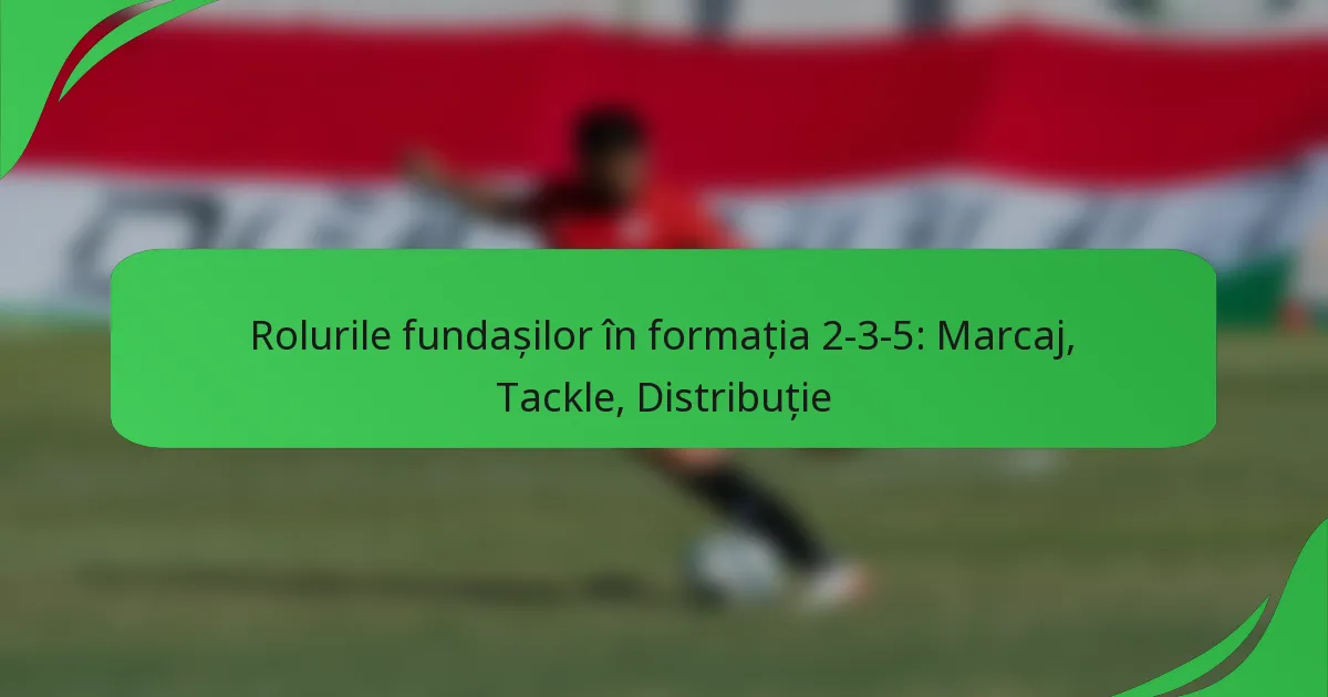 Formație 2-3-5 este un sistem tradițional de fotbal care pune accent pe jocul ofensiv, bazându-se pe doi fundași pentru a oferi o acoperire esențială. Acești fundași joacă un rol critic în marcarea adversarilor, folosind atât strategii om-la-om, cât și zonale pentru a împiedica oportunitățile de a marca. În plus, tacklingul eficient este vital pentru recâștigarea posesiei și asigurarea stabilității defensive, necesitând un echilibru între agresivitate și prudență în abordarea lor.