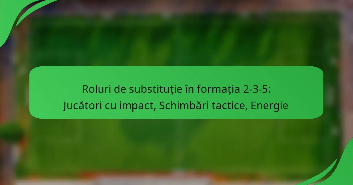 Roluri de substituție în formația 2-3-5: Jucători de impact, Schimbări tactice, Energie