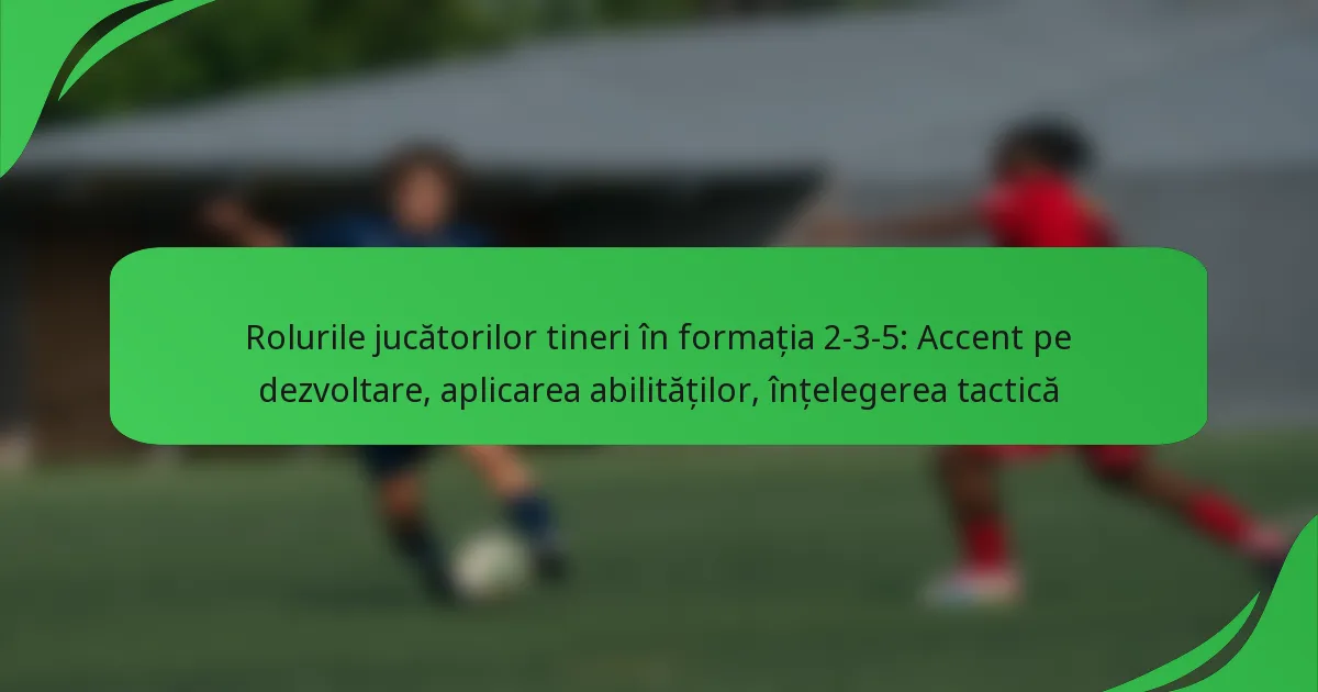 Formația 2-3-5 este concepută pentru a promova o abordare puternică în atac, asigurând în același timp soliditate defensivă, făcând-o un cadru ideal pentru dezvoltarea jucătorilor tineri. Rolul specific al fiecărui jucător în această structură nu doar că îmbunătățește abilitățile individuale, dar promovează și munca în echipă și conștientizarea tactică, esențiale pentru succesul pe teren. Concentrându-se pe o combinație de abilități tehnice, defensive, de mijloc și de atac, jucătorii tineri pot cultiva versatilitatea și o înțelegere mai profundă a jocului.